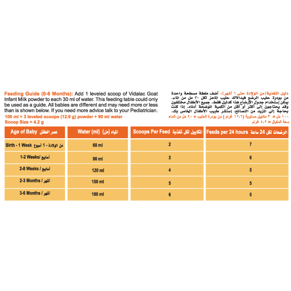 - VIDALAC Goat 1 is designed to support your baby’s growth, development, and nutritional needs from birth up to 6 months.