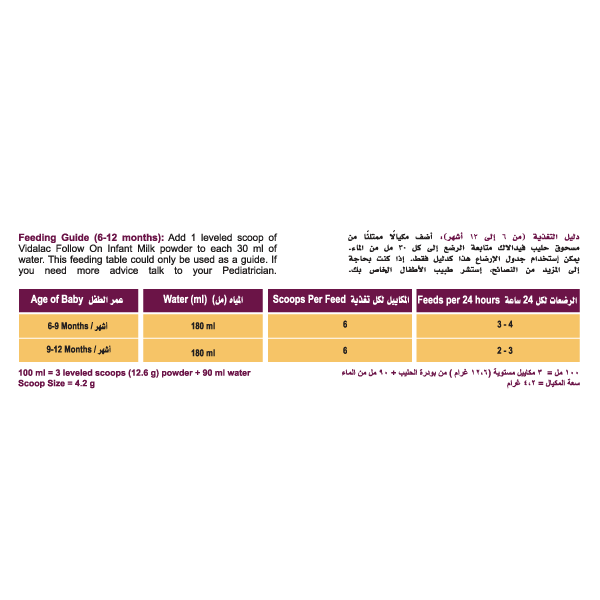 • VIDALAC Goat 2is designed to support your baby’s growth, development, and nutritional needs from 6 months up to 12 months of age.